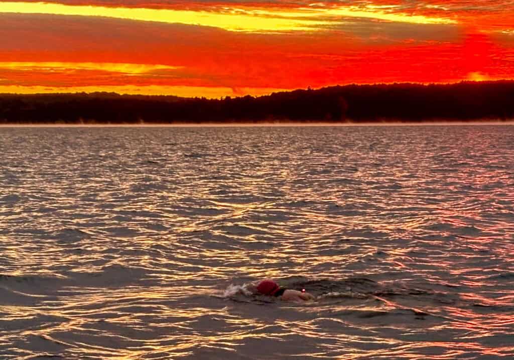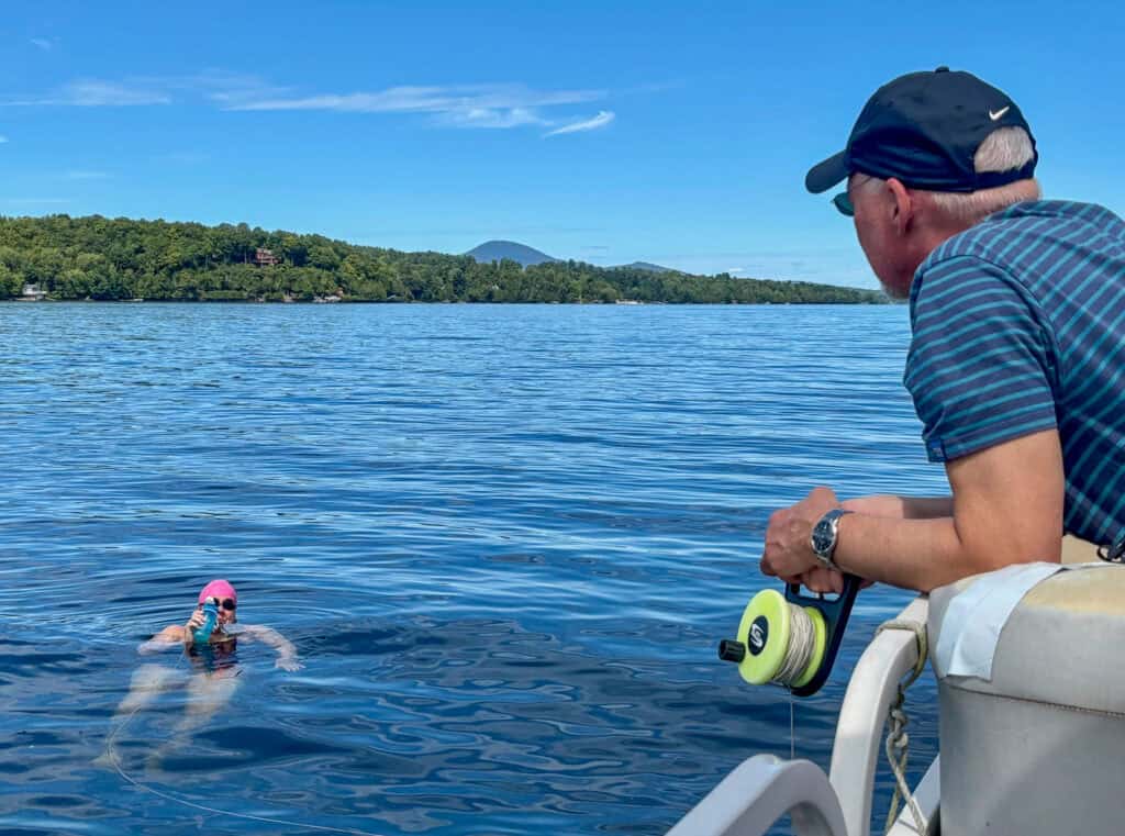 39,7 Kilometer durch einen See, der zwei Länder verbindet: Von Newport im US-Bundesstaat Vermont bis ins kanadische Magog führte am 19. August 2025 Anke Höhnes bislang längste Schwimmen. Unter dem Motto „In Search of Memphre“ richtet der Verein Kingdom Games seit einigen Jahren diese besondere Herausforderung aus – benannt nach dem Seeungeheuer „Memphre“, das hier ähnlich wie Nessie in Schottland leben soll.